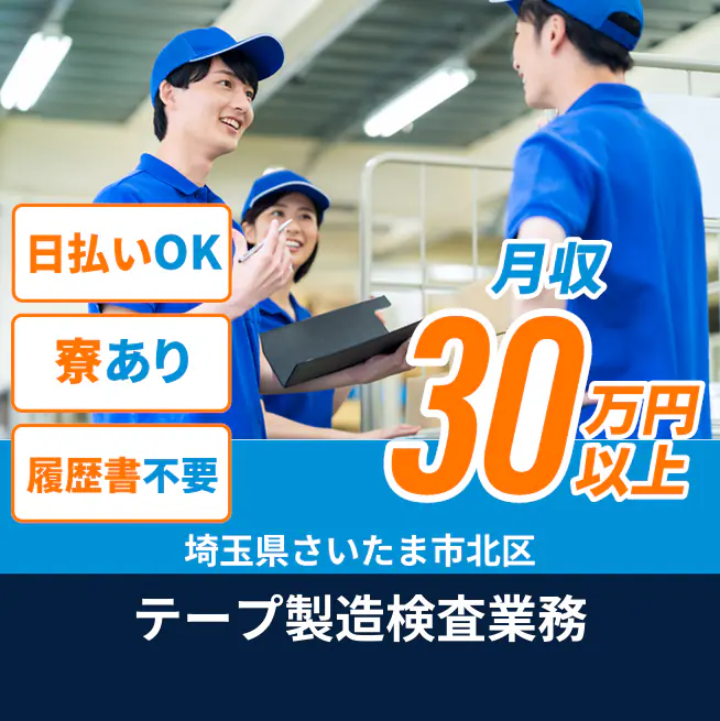 給与詳細 月収例 320,000円 日給例 10,400円 勤務地 埼玉県さいたま市北区 仕事内容 【業務内容】