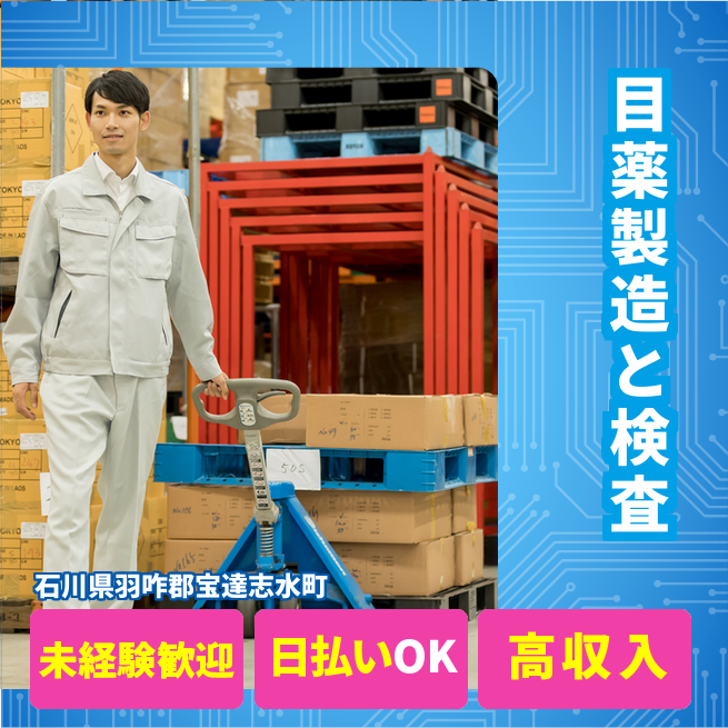 給与詳細 月収例 291,000円 日給例 12,000円 勤務地 石川県羽咋郡宝達志水町 仕事内容 【業務内容】