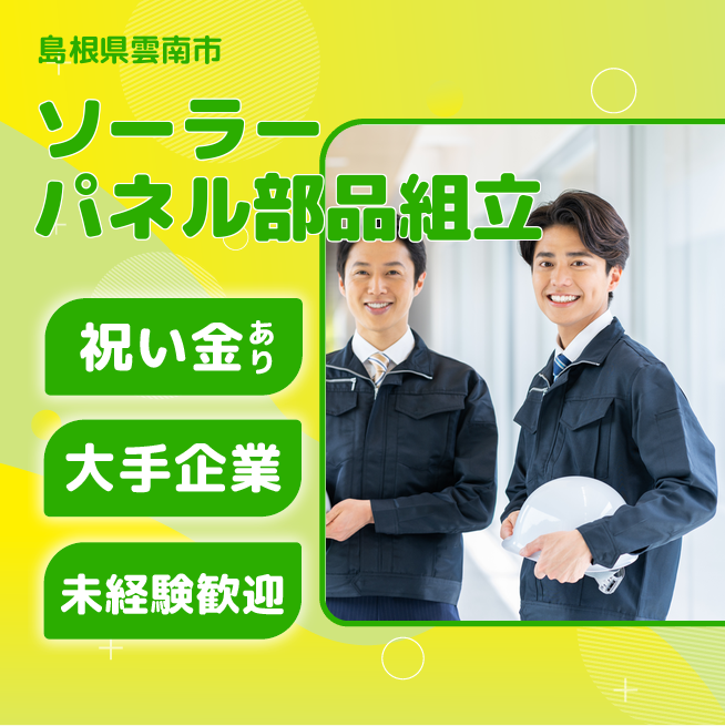ソーラーパネル関連部品の組立、検査、梱包作業を行います。