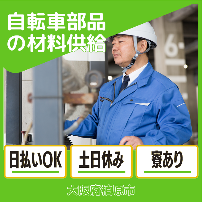 給与詳細 月収例 208,000円 日給例 10,400円 勤務地 大阪府柏原市 仕事内容 【月給制】自転車部品の工場内作業