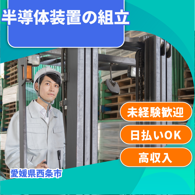 給与詳細 月収例 258,000円 日給例 12,000円 勤務地 愛媛県西条市 仕事内容 半導体イオン注入装置の総組立