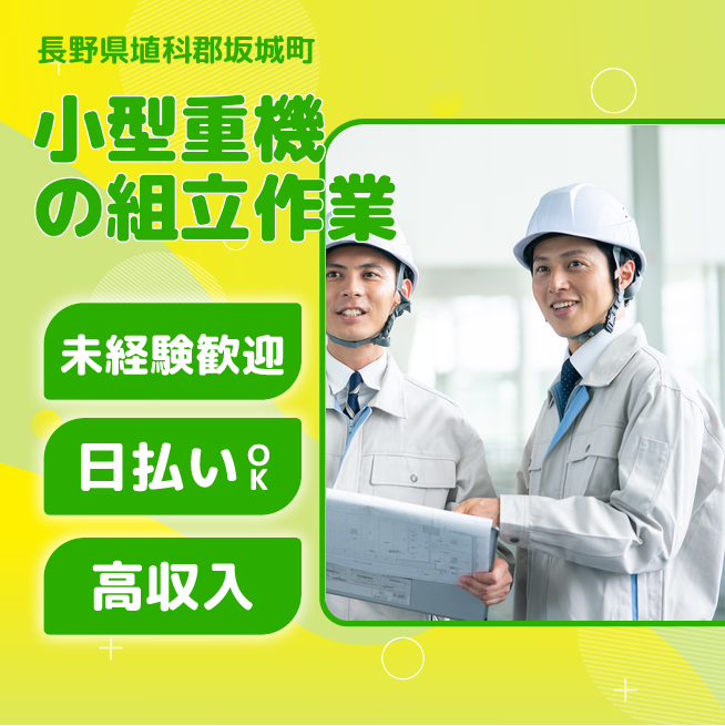 安心の昼勤務【小型重機の組立作業】