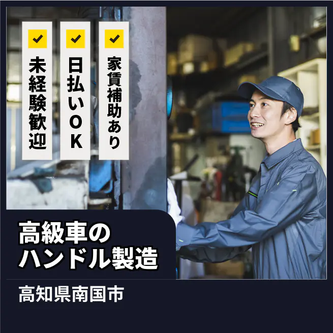 給与詳細 月収例 190,000円 時給例 1,100円 勤務地 高知県南国市 仕事内容 高級車のハンドルの製造