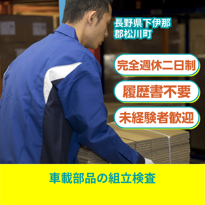給与詳細 月収例 226,200円 時給例 1,160円 勤務地 長野県下伊那郡松川町 仕事内容 プラスチック製品の組立・外観検査・バリ取り・仕上業務