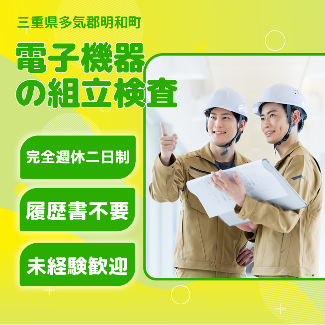 給与詳細 月収例 222,000円 日給例 11,100円 勤務地 三重県多気郡明和町 仕事内容 電子機器の組立・検査および不随する業務