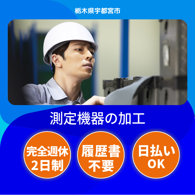 給与詳細 月収例 263,250円 日給例 10,800円 勤務地 栃木県宇都宮市 仕事内容 アルミ枠の切断・フライス・穴あけマシニング作業