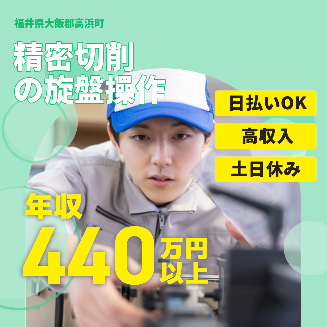 ※生産状況により月20~30時間程度残業あり 必須資格 旋盤機の使用経験をお持ちの方