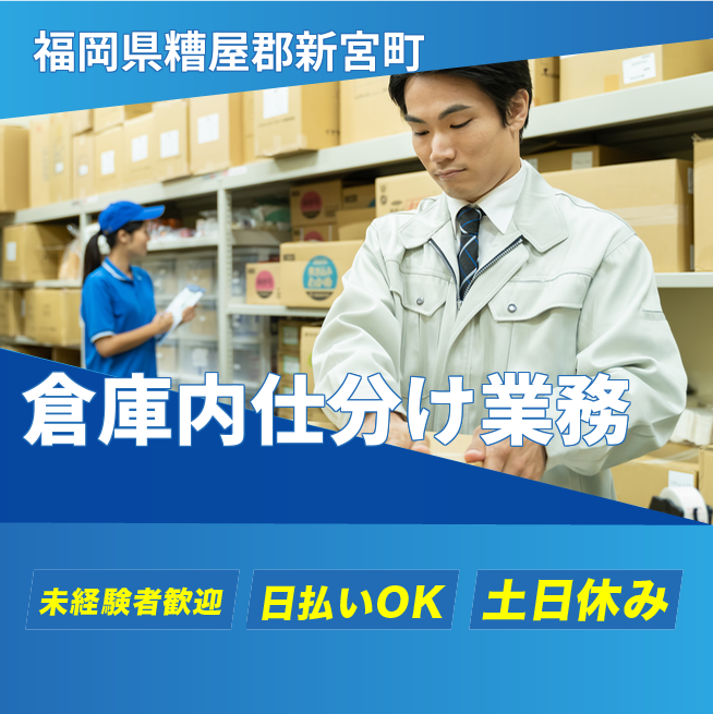 給与詳細 月収例 260,000円 時給例 1,200円 勤務地 福岡県糟屋郡新宮町 仕事内容 【業務内容】