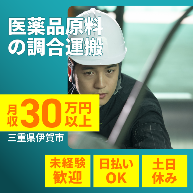 給与詳細 月収例 300,000円 日給例 12,000円 勤務地 三重県伊賀市 仕事内容 【医薬品原料の調合・運搬】