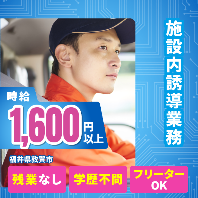 時給例:1600円 交通費 支給あり 応募の流れ 本ページ内<応募する>ボタンより、必要項目をご入力の上、ご応募ください。 勤務地 【勤務地】福井県敦賀市- 勤務時間 【勤務地】8:00〜17:00 必須資格 福利厚生 通勤手当:上限5000円/月 寮形態:寮あり(借り上げの社宅)