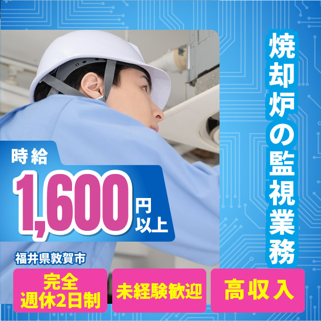 時給例:1600円 交通費 支給あり 応募の流れ 本ページ内<応募する>ボタンより、必要項目をご入力の上、ご応募ください。 勤務地 【勤務地】福井県敦賀市- 勤務時間 【勤務地】①8:00〜17:00②16:30〜1:30 必須資格 福利厚生 通勤手当:上限5000円/月 寮形態:寮あり(借り上げの社宅)