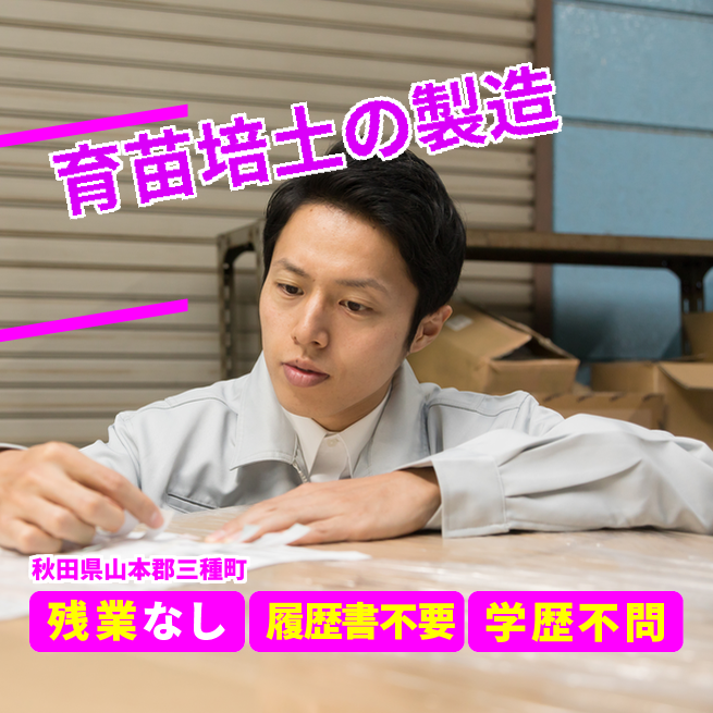 給与詳細 月収例 184,000円 時給例 1,150円 勤務地 秋田県山本郡三種町 仕事内容 水稲用育苗培土/土壌改良資材/園芸用育苗培土の製造