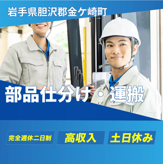 給与詳細 月収例 224,000円 日給例 11,200円 勤務地 岩手県胆沢郡金ケ崎町 仕事内容 【業務内容】