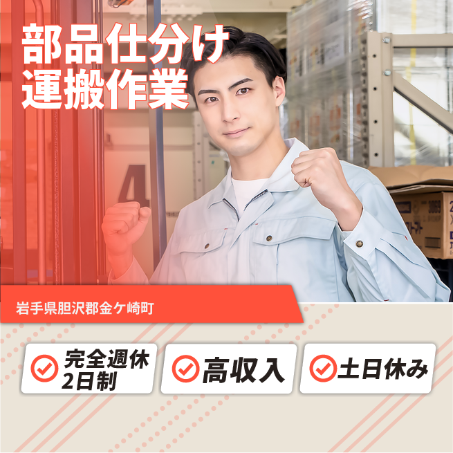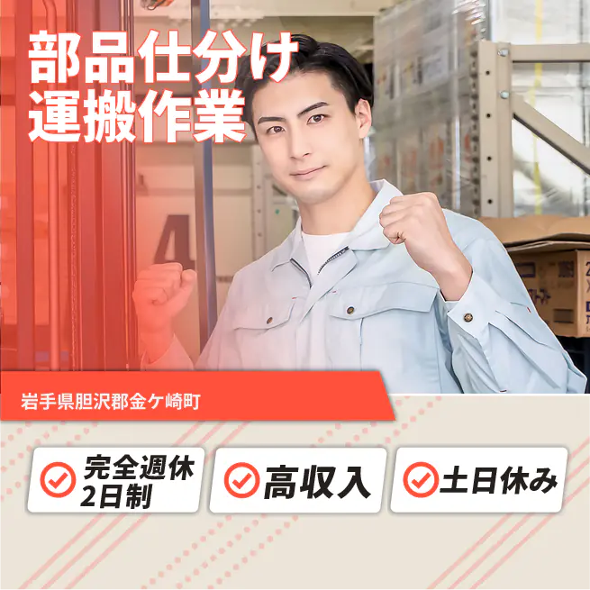 給与詳細 月収例 224,000円 日給例 11,200円 勤務地 岩手県胆沢郡金ケ崎町 仕事内容 【業務内容】