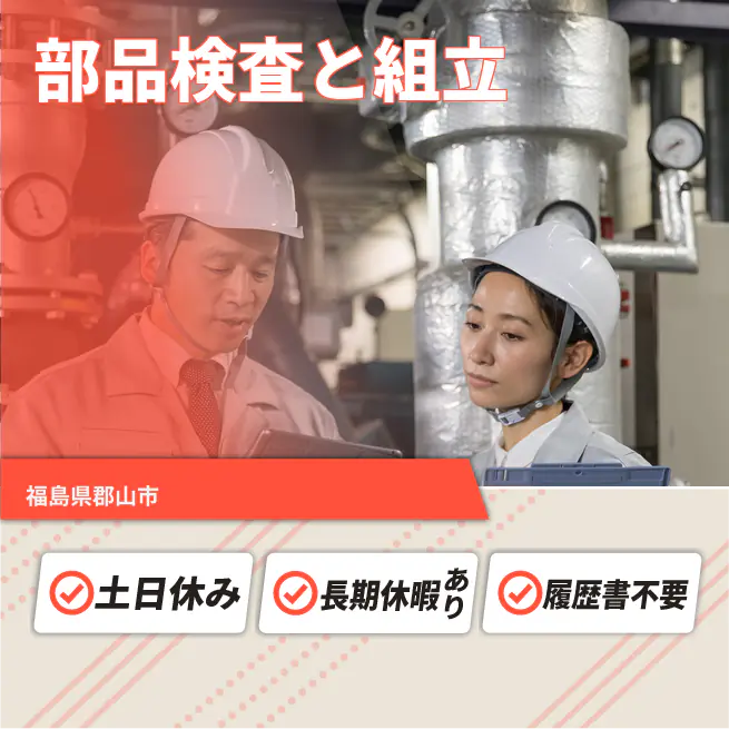 - 検査済みの部品を決められた手順に従って組み立てる作業