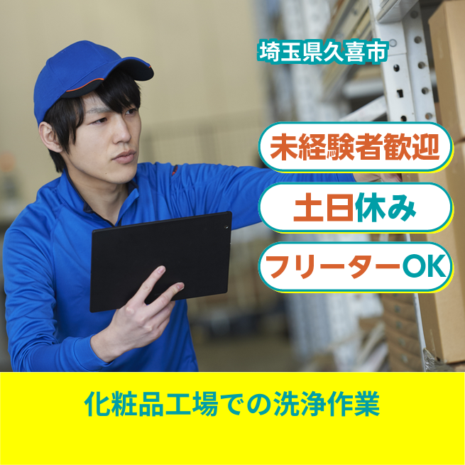 給与詳細 月収例 220,000円 日給例 11,000円 勤務地 埼玉県久喜市 仕事内容 ウィルオブ・ワークの正社員としての取引先の化粧品工場で勤務いただきます。