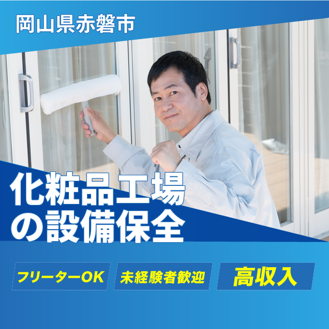 給与詳細 月収例 250,000円 日給例 12,500円 勤務地 岡山県赤磐市 仕事内容 【業務内容】