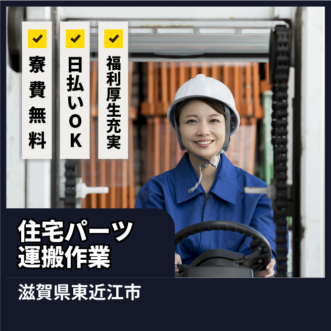 給与詳細 月収例 220,000円 日給例 10,400円 勤務地 滋賀県東近江市 仕事内容 住宅用パーツ製造に関わる