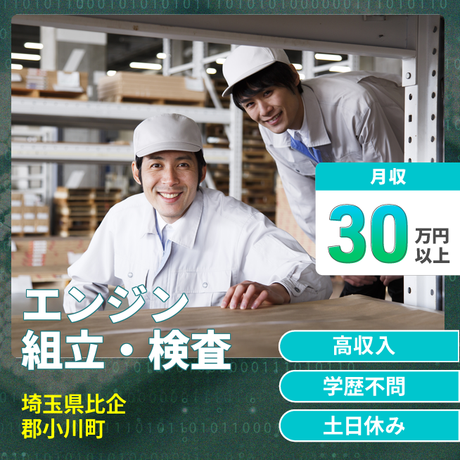 給与詳細 月収例 333,000円 時給例 1,700円 勤務地 埼玉県比企郡小川町 仕事内容 【業務内容】