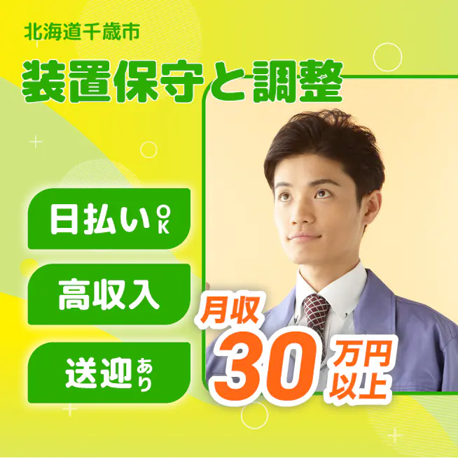 給与詳細 月収例 322,000円 時給例 1,656円 勤務地 北海道千歳市 仕事内容 【業務内容】