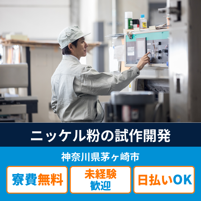 給与詳細 月収例 270,000円 日給例 12,300円 勤務地 神奈川県茅ヶ崎市 仕事内容 【ニッケル粉の開発品サンプル試作】