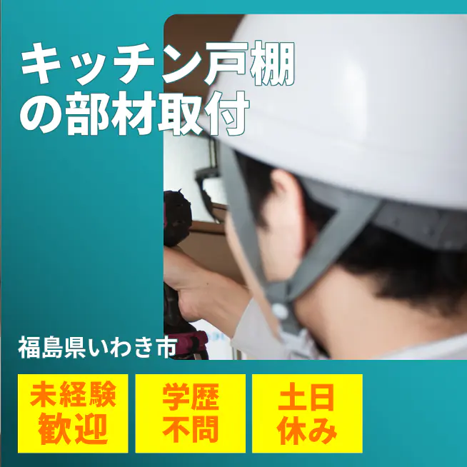家庭用システムキッチンの戸棚に部材を取り付け、目視検査を行う仕事です。