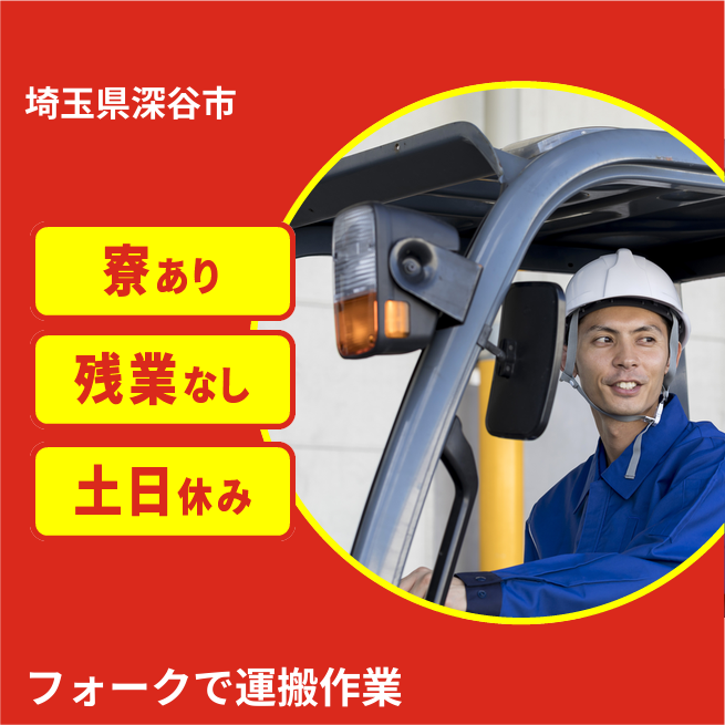 引っ越し費用:本人移動費用のみ会社負担となります 【関東勤務で安定!】埼玉事業所でフォークリフト作業員を募集!外作業で体を動かし、社宅利用も可能。一人暮らしの初期費用を抑えて、プライベートも充実させながら働けます!