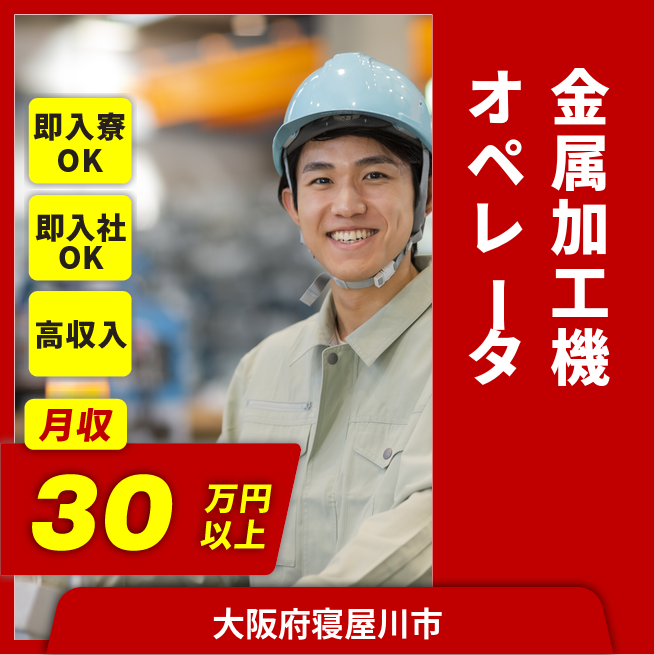 給与詳細 月収例 314,500円 時給例 1,700円 勤務地 大阪府寝屋川市 仕事内容 マシニングセンタやNC旋盤で金属製品を加工する機械オペレータのお仕事です。
