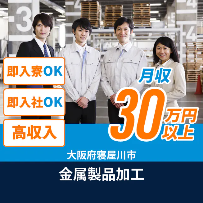 給与詳細 月収例 314,500円 時給例 1,700円 勤務地 大阪府寝屋川市 仕事内容 【業務内容】