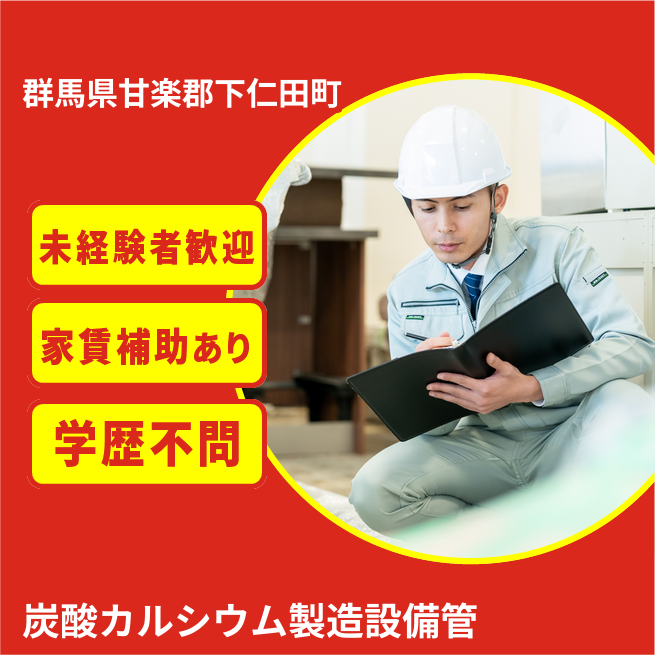 給与詳細 月収例 213,901円 時給例 1,187円 勤務地 群馬県甘楽郡下仁田町 仕事内容 炭酸カルシウム製造に伴う設備の運転・メンテナンス、計器類の操作や監視作業 など