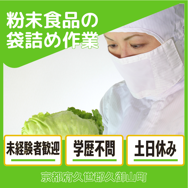 給与詳細 月収例 210,630円 時給例 1,180円 勤務地 京都府久世郡久御山町 仕事内容 抹茶やゴマ等の食品を粉末状に加工している会社です。