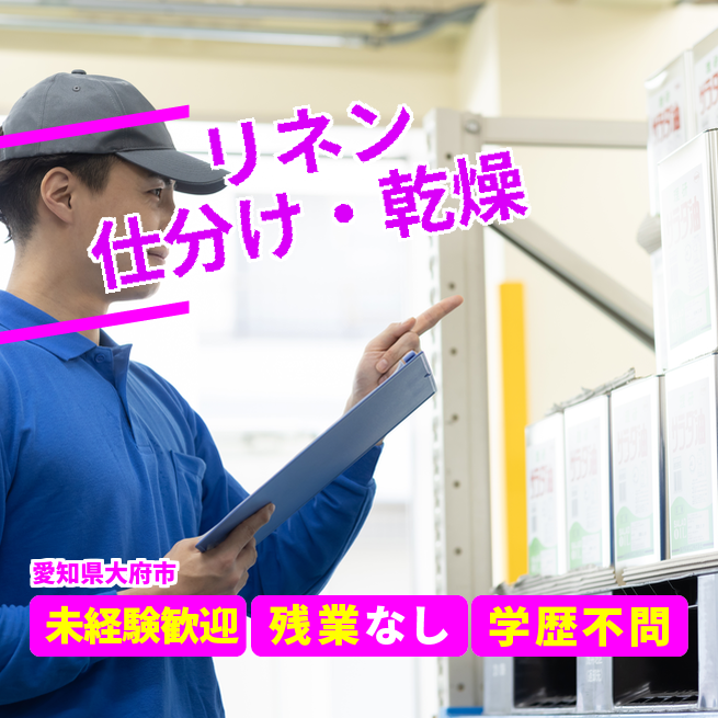 休日出勤手当 有給取得奨励日 公開日 2025年10月01日 仕事内容:病院、老人介護施設で使用しているシーツ、枕カバー、パジャマなどの仕分け、乾燥業務です。