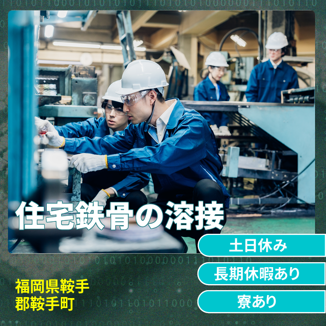 工場カレンダーによって出勤日が決まります。 必須資格 半自動溶接の有資格者のみ受入可能。他の溶接資格は不可。(半自動溶接技能者資格)