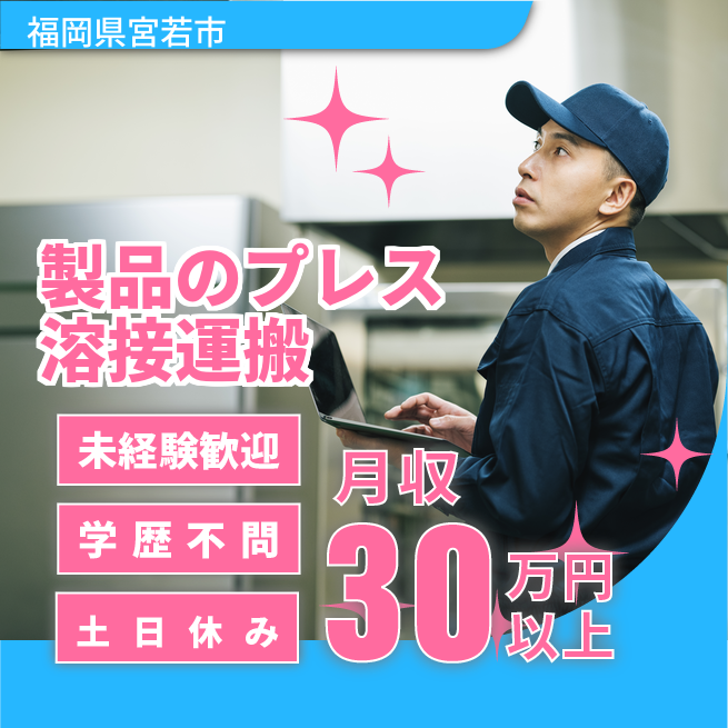 給与詳細 月収例 304,700円 日給例 11,500円 勤務地 福岡県宮若市 仕事内容 【プレス】