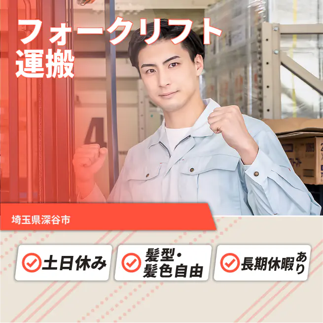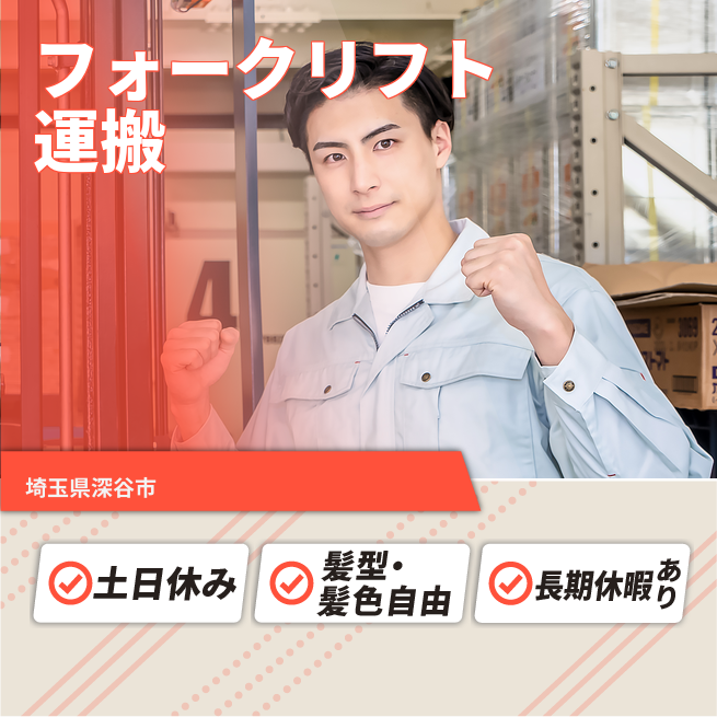 給与詳細 月収例 288,720円 日給例 10,500円 勤務地 埼玉県深谷市 仕事内容 【業務内容】