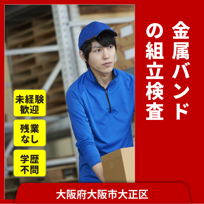 給与詳細 月収例 195,000円 日給例 10,400円 勤務地 大阪府大阪市大正区 仕事内容 金属製締具(バンド)の部品取付、目視検査、梱包作業をして頂きます。