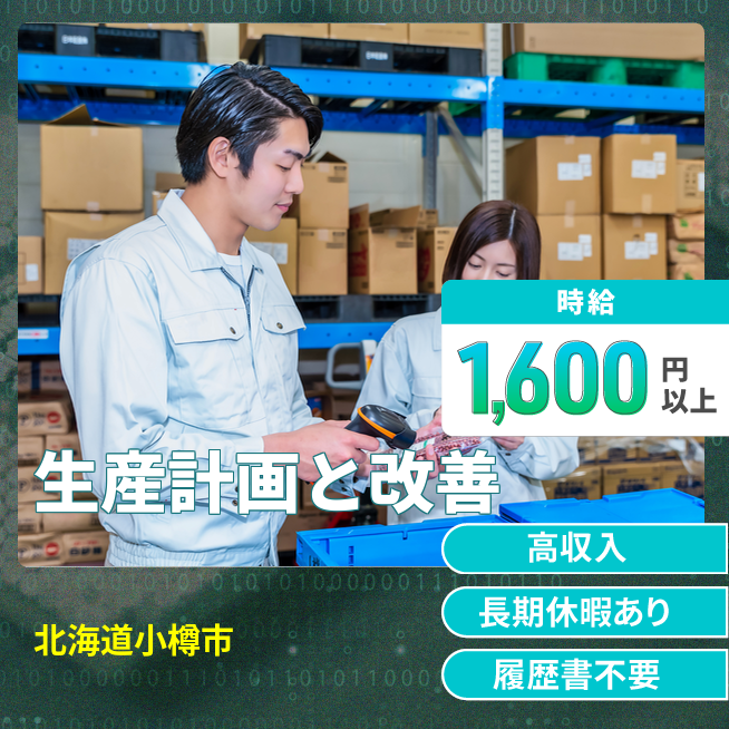 時給例:1625円 交通費 支給なし 応募の流れ 本ページ内<応募する>ボタンより、必要項目をご入力の上、ご応募ください。 勤務地 【勤務地】北海道小樽市銭函3丁目 勤務時間 【勤務地】【日勤】