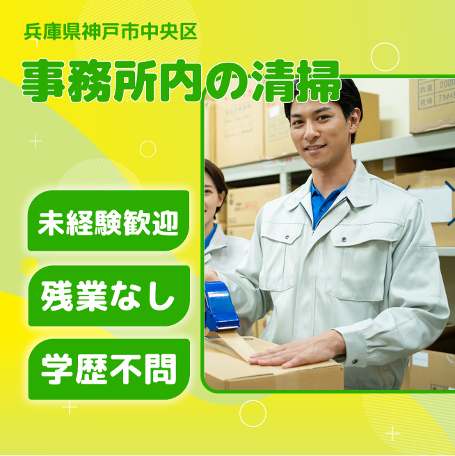 給与詳細 月収例 105,000円 日給例 10,000円 勤務地 兵庫県神戸市中央区 仕事内容 事務所内の清掃業務に携わっていただきます。