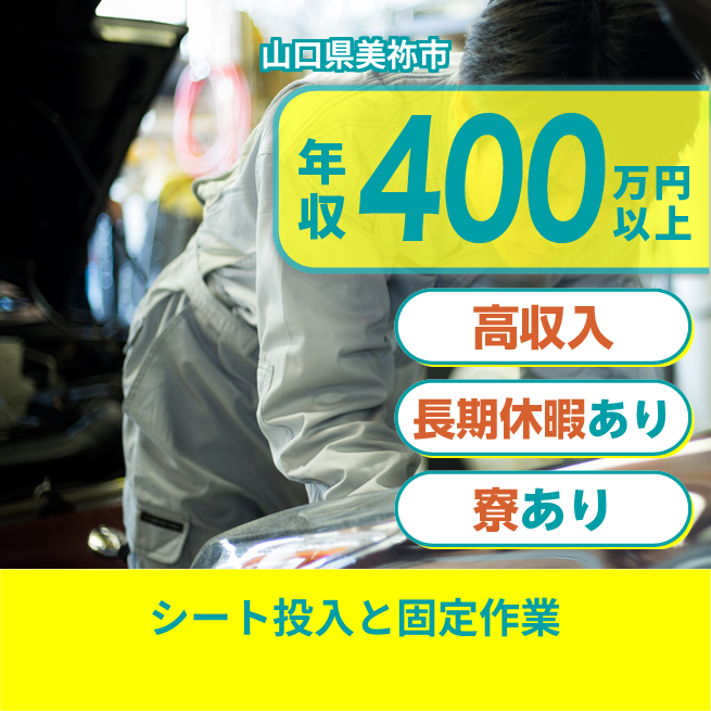 給与詳細 年収例 4,037,520円 月収例 336,460円 勤務地 山口県美祢市 仕事内容 【業務内容】