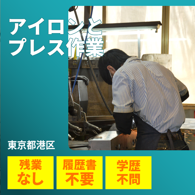 給与詳細 月収例 213,000円 日給例 10,650円 勤務地 東京都港区 仕事内容 【アイロンとプレス作業】