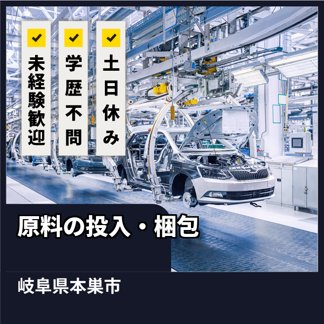 給与詳細 月収例 272,187円 日給例 10,000円 勤務地 岐阜県本巣市 仕事内容 【業務内容】