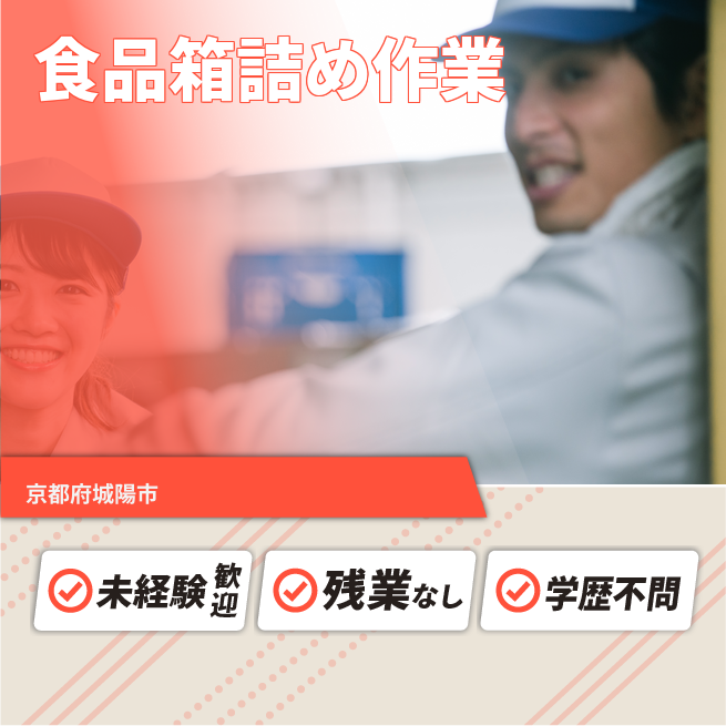 給与詳細 月収例 144,000円 時給例 1,200円 勤務地 京都府城陽市 仕事内容 【業務内容】