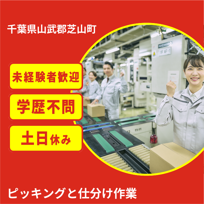 給与詳細 月収例 253,263円 日給例 10,288円 勤務地 千葉県山武郡芝山町 仕事内容 決められた部署にて、ピッキング作業や仕分け作業を行っていただきます。