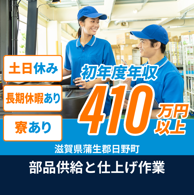 給与詳細 年収例 4,194,000円 月収例 349,500円 勤務地 滋賀県蒲生郡日野町 仕事内容 【業務内容】