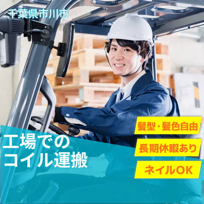 給与詳細 月収例 288,750円 日給例 12,000円 勤務地 千葉県市川市 仕事内容 鉄鋼や建築用資材などを製造している工場で、コイルの移動や運搬作業などをお願いします。
