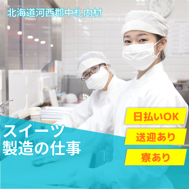 給与詳細 月収例 182,700円 時給例 1,200円 勤務地 北海道河西郡中札内村 仕事内容 【業務内容】