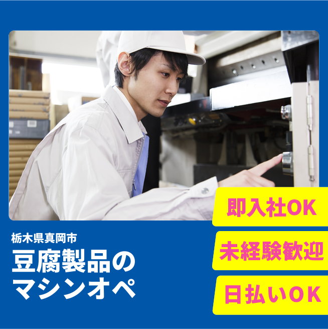 給与詳細 月収例 246,920円 日給例 10,000円 勤務地 栃木県真岡市 仕事内容 【豆腐製品製造のマシンオペレーター】