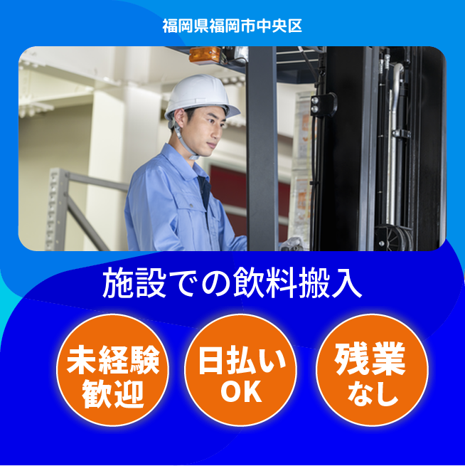 福岡市中央区内の大型ドーム施設内で、飲料(酒類)の配送・搬入・回収作業を行って頂きます。