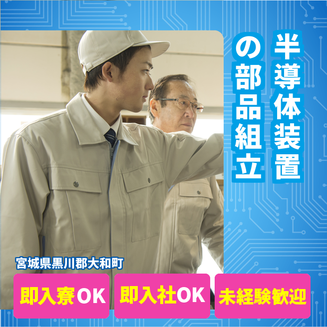 給与詳細 月収例 211,190円 時給例 1,170円 勤務地 宮城県黒川郡大和町 仕事内容 【部品の組立作業】