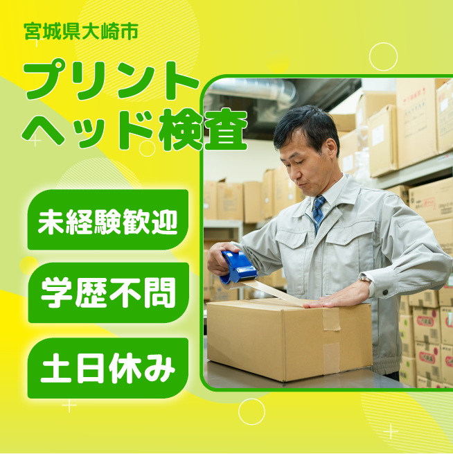 給与詳細 月収例 234,000円 時給例 1,170円 勤務地 宮城県大崎市 仕事内容 【プリントヘッドの検査(夜勤)】